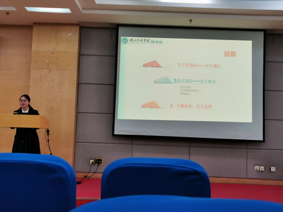 11月20日下午6点,为帮助毕业生顺利完成毕业论文及提高论文质量,更好地发挥图书馆个性化服务职能,图书馆在大学生活动中心3号报告厅开展了《学位毕业论文规范那点事儿》的专题讲座。此次讲座由学科服务部段菲菲老师主讲,来自旅游与酒店管理学院的2021届毕业生参加了此次专题讲座。现场气氛活跃,效果良好。