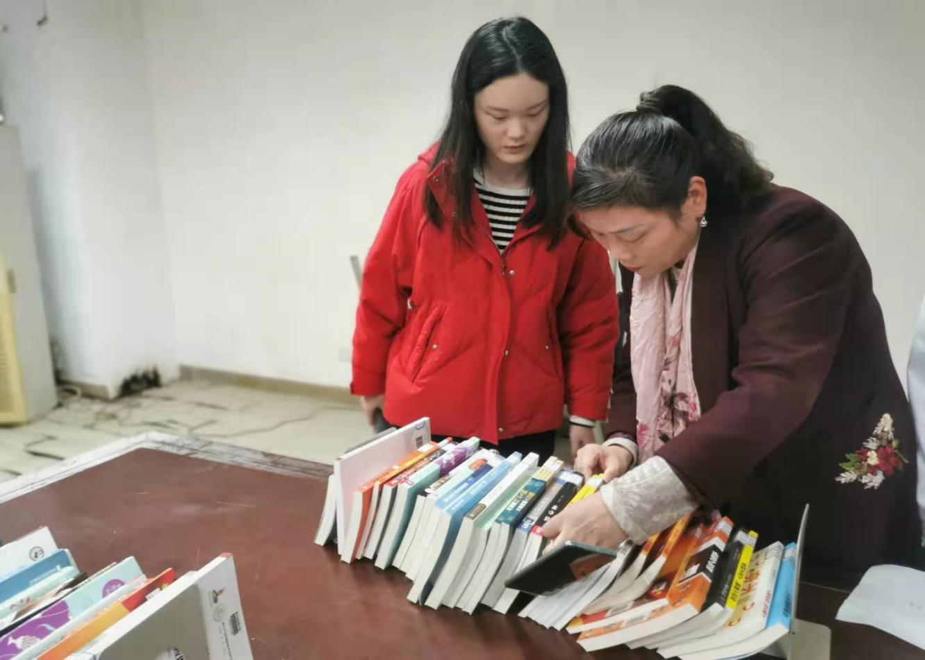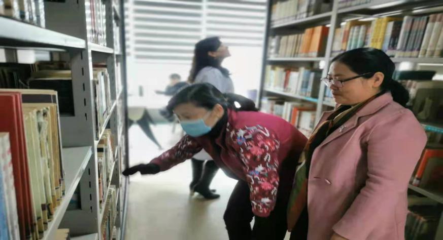 馆员们在认真仔细地查架