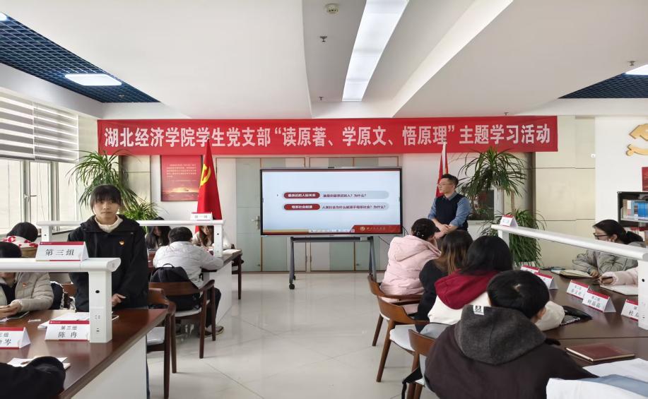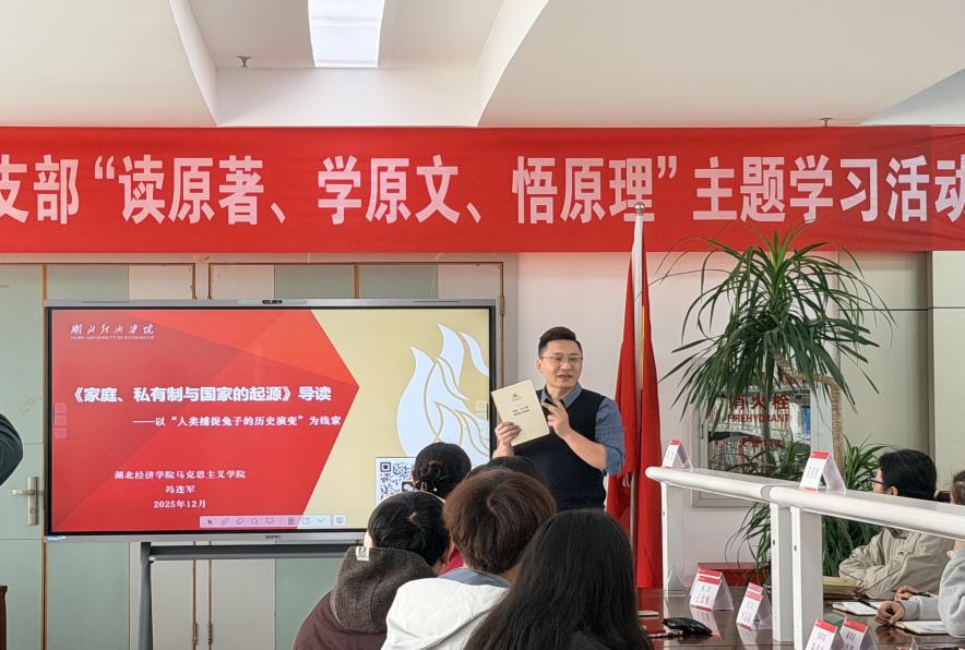 12月19日下午,金融学院学生党支部接续开展主题学习,特邀马克思主义学院副院长冯连军老师主讲。冯连军以恩格斯经典著作《家庭、私有制和国家的起源》为切入点,结合当代经济社会发展实际,深入浅出地阐释了马克思主义基本原理的核心要义,重点解读了其对把握经济规律、分析金融现象的指导价值,引导学生学会运用马克思主义立场、观点、方法破解专业学习与实践中的困惑。培训结束后,同学们纷纷分享学习感悟,一致表示要传承马克思矢志不渝追求真理的崇高精神,进一步坚定理想信念、强化理论武装,将远大理想与专业精进紧密结合,以实际行动恪守入党誓词、争当先锋模范,为未来投身祖国建设、服务经济社会发展积蓄力量。