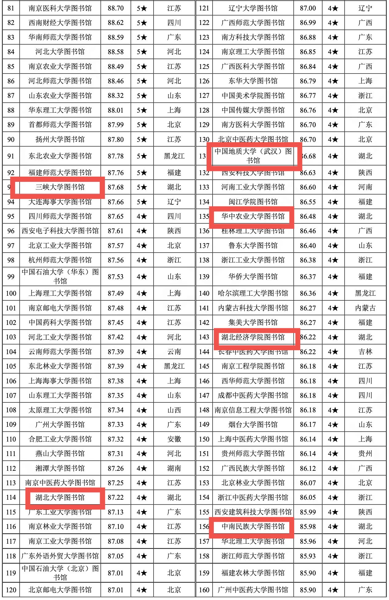 评估结果显示,湖北经济学院图书馆以86.22分的综合成绩,位列全国本科院校图书馆第143名,被评定为四星级高校图书馆。在湖北省入围的13所高校图书馆中,我校图书馆排名第十位,充分彰显了在数智化转型背景下,我校图书馆过硬的综合服务能力与行业影响力获得业界高度认可。