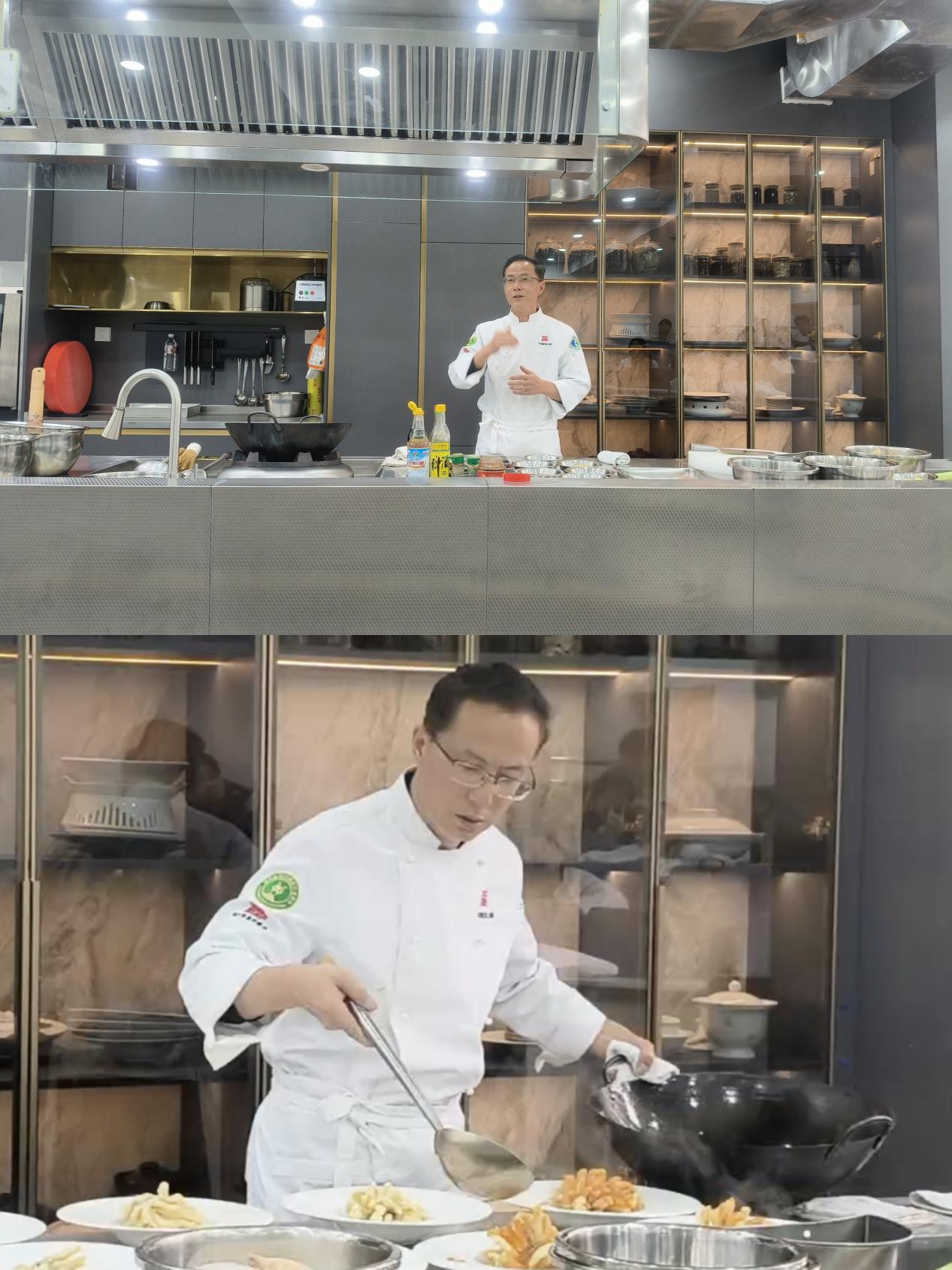 活动在楚菜现代产业学院中餐热菜示范室和中餐热菜实训室举办,全馆女教职工踊跃参与。现场气氛热烈而温馨,陈才胜大师现场进行了精湛的厨艺教学与菜品演示,对多道经典家常菜品的烹饪技法进行了讲解。从选材处理、刀工火候,到调味摆盘,大师细致讲解、手把手指导,老师们认真观摩、积极提问,并分组进行了实操体验。活动现场香气四溢,欢声笑语不断,大家在学习交流中不仅提升了厨艺,更感受到了亲手制作的乐趣与合作互动的温情。