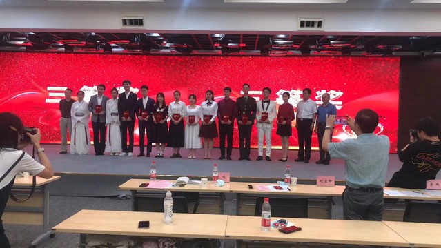 6月8日下午,决赛在武汉大学图书馆学术报告厅举行,大赛邀请了谢东升、马建彬、樊昕、王新才、吴汉桥和袁黎明担任评委。经大赛评委会严格评审,我校学生杨明现场表现出色,《废墟上的敬礼》的朗诵与《军魂》即兴演绎表现出很高专业水准,最终荣获三等奖;图书馆刘玉老师获得优秀指导老师荣誉称号。